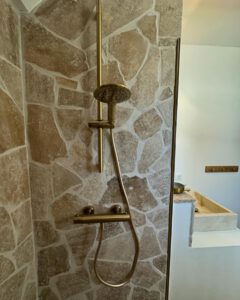 Zudem kannst du dir in unserer gut ausgestatteten Outdoorküche eigene Mahlzeiten zubereiten. Der 5×10 Meter große beheizte Pool sowie verschiedene Sonnen- und Schattenplätze laden zum Entspannen und Verweilen in absoluter Ruhe ein.